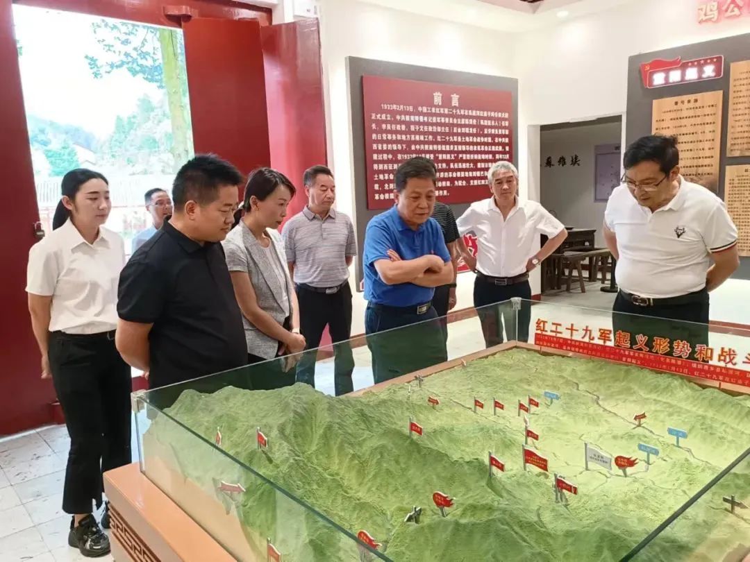 7月21日,省决策咨询委员会文化组副组长胡煜一行,来县就“革命文物保护与革命精神传承”开展实地调研。市政府研究室、市文旅局相关负责人,县委常委、副县长夏兮陪同调研。
