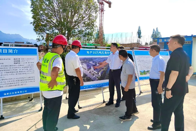 在杨河镇石膏产业园项目建设现场,李代斌对照规划图纸察看施工进度,现场协调解决建设难题。他指出,石膏产业市场前景广、发展潜力大,要坚定发展信心,加快项目建设进度,推动项目早日投产达效。