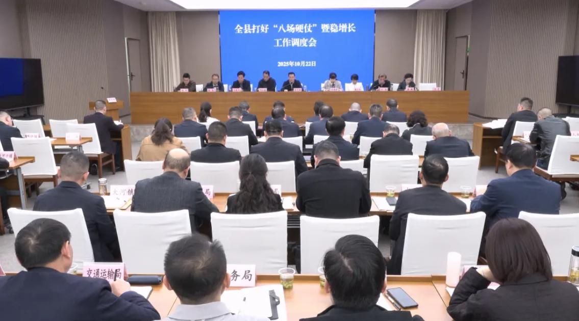 10月22日,县上召开打好“八场硬仗”暨稳增长工作调度会,县委书记李代斌出席会议并讲话,县委副书记、县长王亚珍主持会议,县人大常委会主任邱洪盛,县政协主席朱小平及全体在县县级领导参加会议。