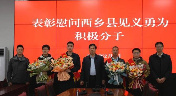 表彰会上,对在危急时刻挺身而出的张胜涛、秦龙、谭寿江、魏长全四位同志授予“西乡县见义勇为积极分子”称号,颁发了荣誉证书和慰问金。