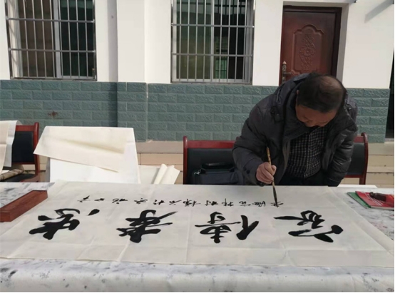 活动中,书画家们挥毫泼墨,现场为村民创作了《战地黄花分外香》、《家传孝忠》等30余幅书画作品,一幅幅字体遒劲、内容积极向上的书画作品渐渐呈现出来,让村民近距离感受文化魅力,进一步激发了大家自力更生、干事创业,创造美好生活的精神动力和道德滋养,为乡村振兴增添了新的文化色彩。