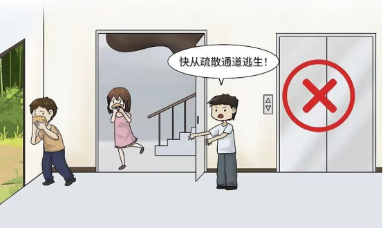 ☞逃生时禁止乘坐电梯,更不要盲目跳楼