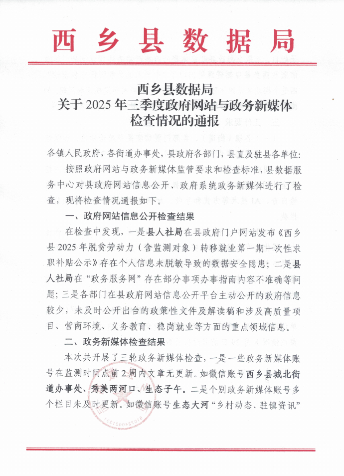 2025年三季度政府网站与政务新媒体检查情况的通报